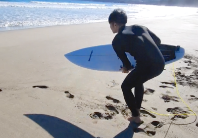 いつもよりも丁寧にボードを握ると、足早に海に向かう!