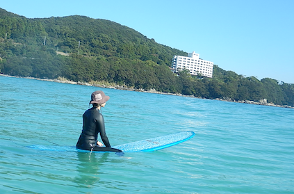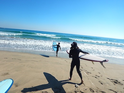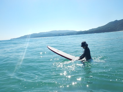 サーフィンする回数が減って久しぶりのサーフィンですが波を捕らえれば、さすが!ベテラン!さらに楽しくサーフィンする為のスムースで加速するテイクオフのコツを練習していただきました!