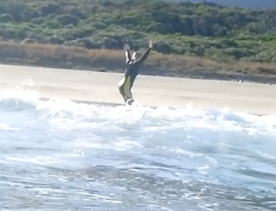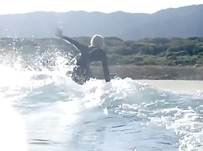 今回も、早々にテイクオフを成功させると、後半にはパドリングからの テイクオフにも成功!!