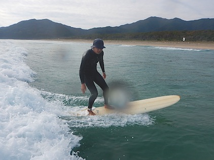苦手なタイプの波に対応できるようにテイクオフのバリエーションをもう一つ増やしてもらえるよう練習していただきました。