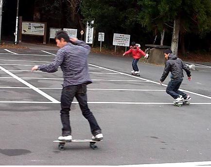 チューンナップしたスケボーを楽しむAくんとTくん、Iくん。 アップスンダウン、ドライブターンにカットバック なかなかよいイメージサーフィンができます。 「はぁ、はぁ、はぁ 」 息づかいが乱れるほどいいトレーニングになりましたね。