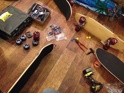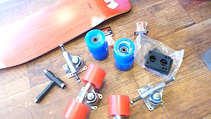 サーフィン練習用のスケートボード製作中いろんなとこから部品取り寄せて集まってきました。市販のコンプリートでは納得いかないんです。いいものを知ってしまうと仕方ない。スケートボードも意外と奥深いです。よりサーフィンに近い動きを追求中シ... -