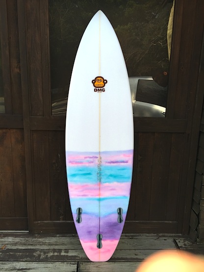 これ僕が乗っても調子よさそうなアウトラインとロッカー!掘れた波で乗ってみたいですね~ カラーデザインはMちゃんこだわりのカラーです。