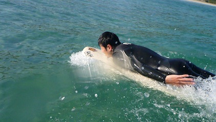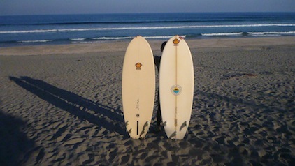 Hちゃんとボード交換!久しぶりにベーグルフィッシュに乗らせてもらいましたが、ベーグルファンと比べ、ショートボードの感覚に近く、マニューバー性に優れていました。