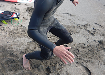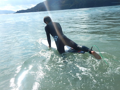 入水!!初めてのファットなボード。これまでの感覚とは全く違います。ドキドキ、ワクワク!!