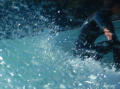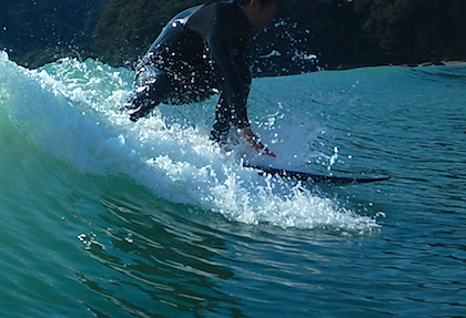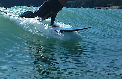 「めっちゃ速いですね~」小波サーフィンが楽しそうなMさん。