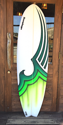 KさんのNEWボードです!! 僕のテスト中のボードカラーを女性っぽくアレンジ!! ボード幅とボリュームで今乗っているEPSのショートボードでの不安定感を解消しつつ、女性でもボードコントロールを容易にするために良い感じの... -