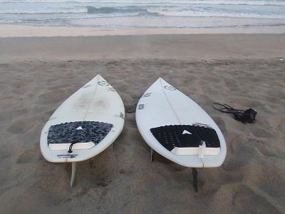 全く同じボードが2本。よ~くみると右がやや細い。 NE50(テール部分にEPS)でパンプスカッシュ。 2010モデルのデザイン。 テール部分にNE50で浮力が強く、スモールサイズでは 抜群の加速感とパンプウイングで板の返り早く、かなり調子... -