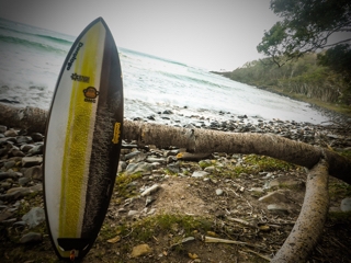 ボードテストの為にオーストラリアに持ち込んだ仮名チョコバナナ。笑 このボードをパワフルなパワーブレイクとメローなポイントでテスト。 こちらではそうはたくさん波を掴めないのでまだ探っていっているところです。 -