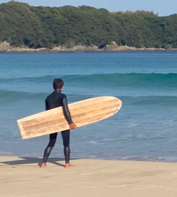 1cmほどの厚みの木の板。ロッカーもほとんどなく、フィンもない。