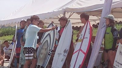 決勝でのバックサイドがシェイパーのりさんの目に止まり、奈緒子さんベストパフォーマンス賞をゲット!!