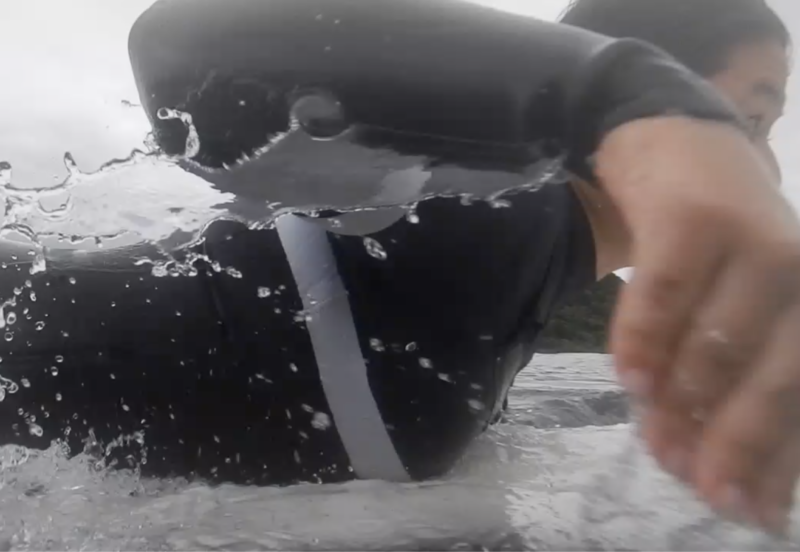 今回すごく良い感触をつかみ、パドリングの加速度が一気に上がりました!その分波に追いつける確率が上がり、早くテイクオフできる確率も上がりました!