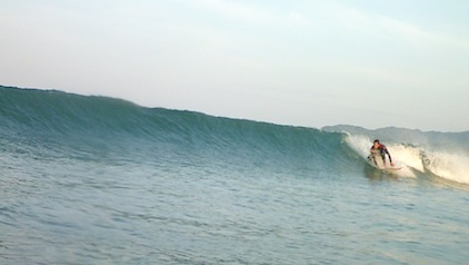 2日前の夕方の写真。ロングしか楽しめない小波でしたが夕方条件がそろったのかサイズアップ!良い波でしたね。 写真はAくん。連休中も良い波立ちますように -