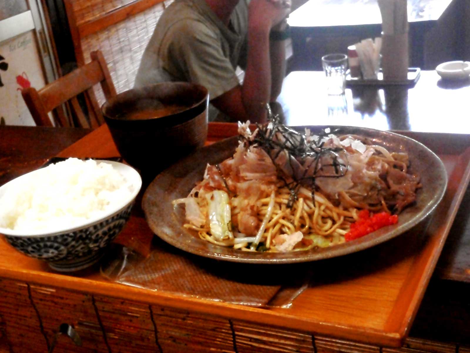 写真は、 しょうゆ焼きそば 定食 ごはん 味噌汁 お漬け物 付き