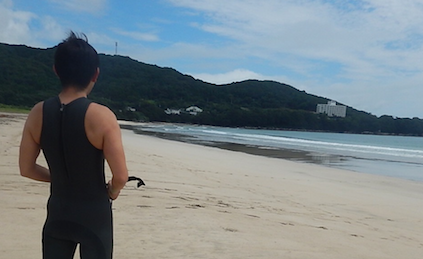岡山からスクール初参加のKさん。この海には思いがあるようですね。