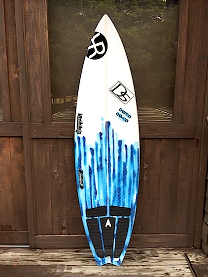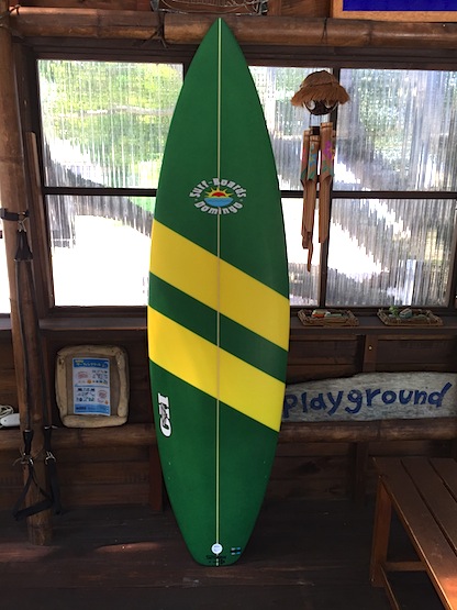 オーストラリアに旅立ったRIDER GAKUのボード。しっかりボリュームがあるタイプでしっかりしたドライブターンを身につけ、オーストラリアのパワーのある波用にコントロール性を高めたデザインへ