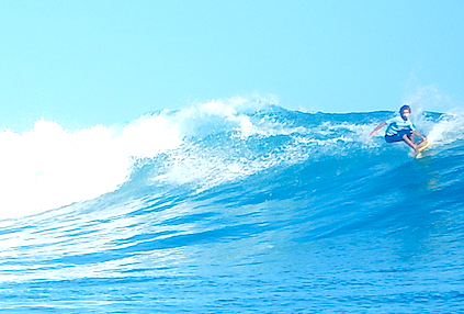 レールの反発をうまくドライブにつなげたボトムターン!!Kくんのパワーを生かせるボードになりました。