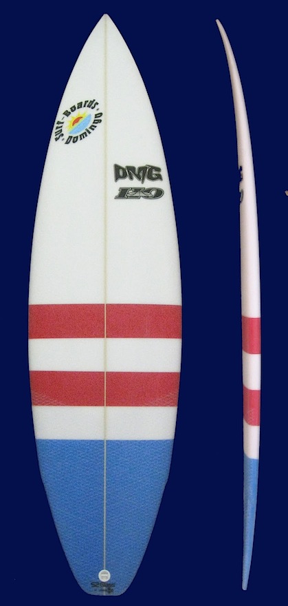 DくんのPOCKET S 。前足にしっかり体重を乗せてボードをコントロールするタイプのサーファーに合うデザイン。ドライブと板の返しのシャープさも試合で実証!!
