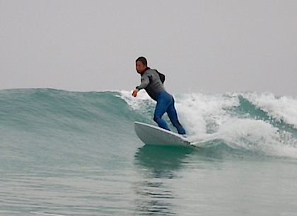 小さな波で短いボードでライディングするようにサイズのある波でコントロールできました。切り返しが楽でサイズのある波で厳しいポジションでの不安感が少ないので以前よりも厳しいポジションを狙えます