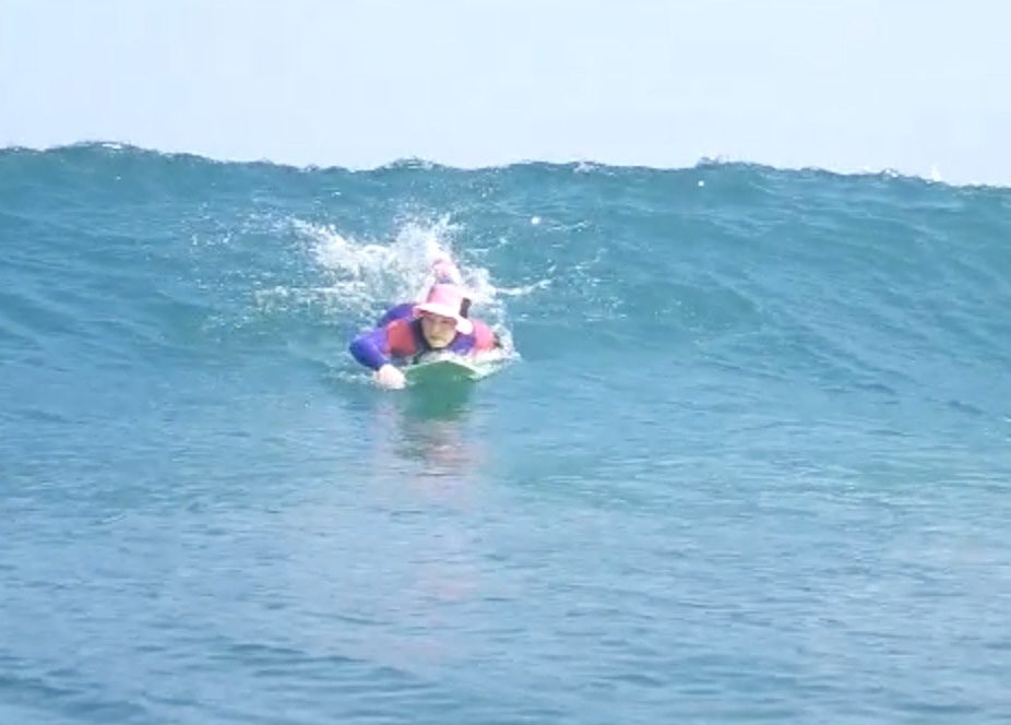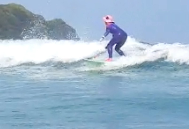 ブランクを感じさせるどころか、誰よりも多く波をつかみ、カットバックにもチャレンジ。