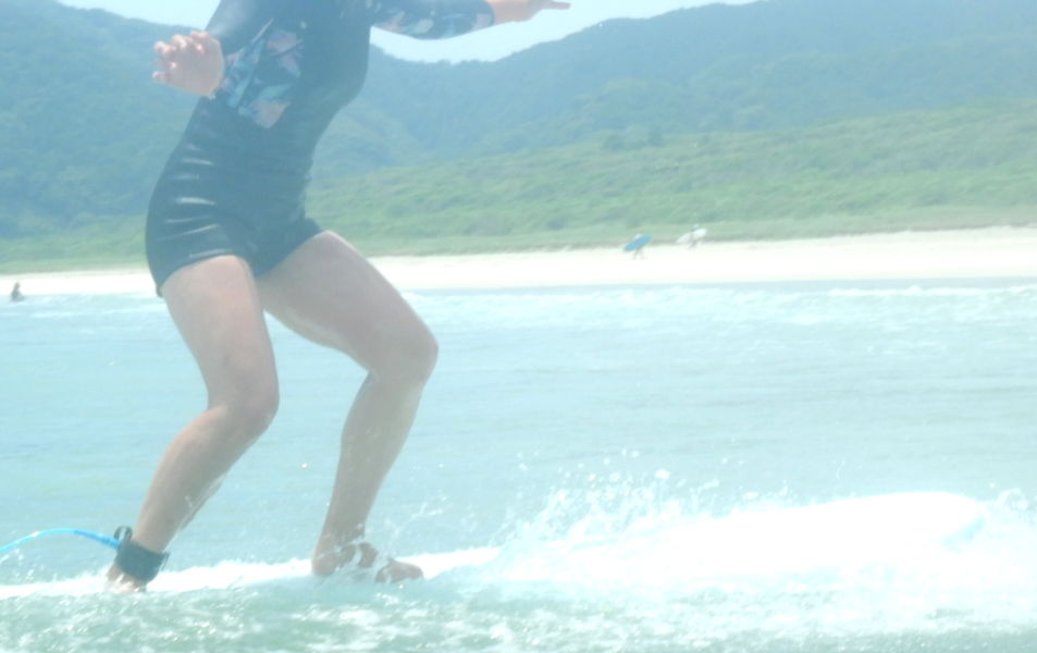 乗れる本数を増やす、テイクオフを早くする、これが上達の必須条件。 これをやるために必要な基本動作の練習! みなさん、それぞれの課題にトライ!! 乗れる本数が確実に上がりましたね!! パワーのない小波ではうまく乗れなかった