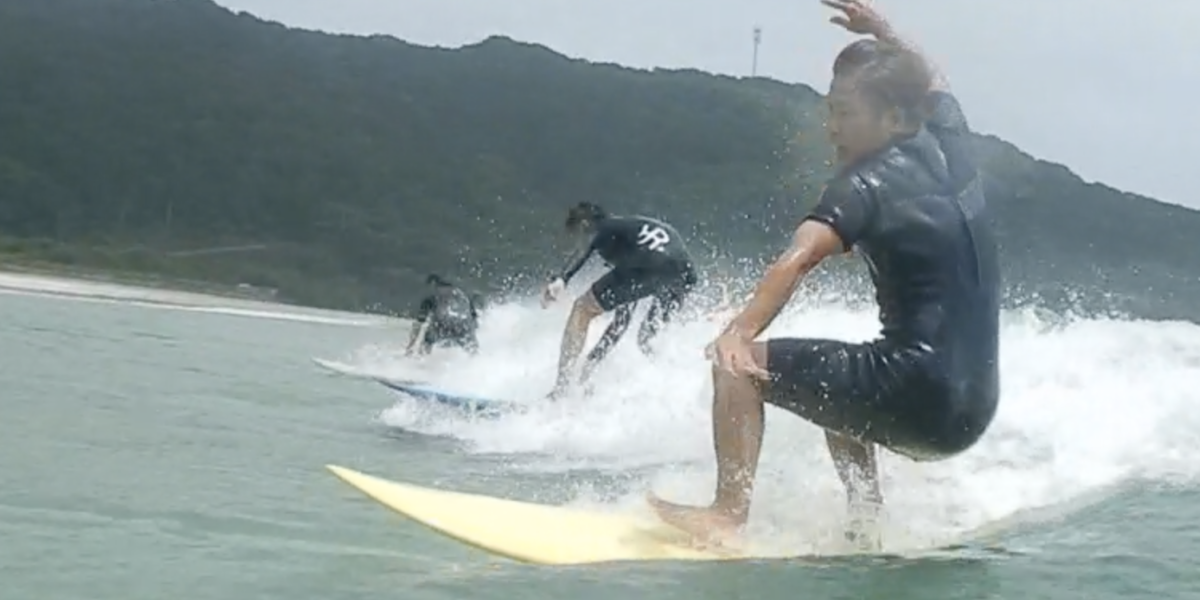 レッスンに適しているコンディションは、クリーンな小波。 大きいと必死になるので意識できないし、良い波だと波に乗りたい欲求に意識が奪われてしまう(笑) そういう意味でも波が小さくクリーンな日のレッスンは、自動車学校の教習所