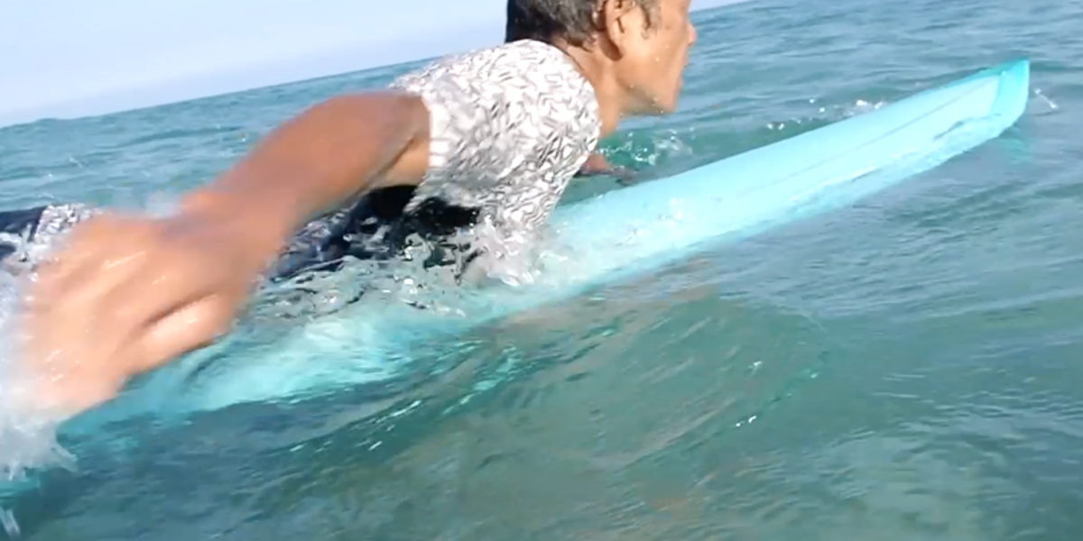 回数は少ないながら、冬の間もコツコツ練習しながら、自分で波に乗れるように練習してきたKさん。 サーフボードオーダーし、 そのボードを手にするまでにより、自分で波に乗る形を完成させておきたい! この夏休みレッスンの回数を増