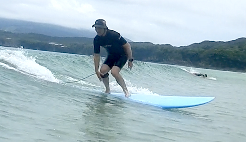 上手な人の映像を見ていると、共通 している部分がある。 みんな重心の位置が安定している、軸がまっすぐ、リラックスしている などなど。 波が小さなレッスン。そういう基本的な部分を修正するにはもってこいのコンディション。 &
