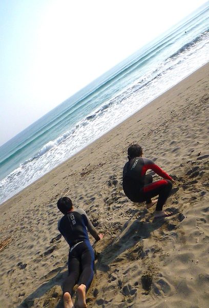 海に入る前にテイクオフの特訓をするMさん&Nさん。 ここが一番重要なんですよね。 お二人ともテイクオフのコツをつかめてもらえたようで 良かったです。ライディングの写真がないのが残念でしたが、 また次回はいいところ撮ります