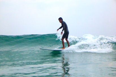 新婚旅行でこちらに来られたOさんご夫婦。 先日は波が小さく延期になっていましたが、今度は波がサイズアップ! 今日も延期か!?と思いましたが、なんとかハネムーンスクール開催!! 小柄ですがパワフルな奥さん。 力強いパドルで