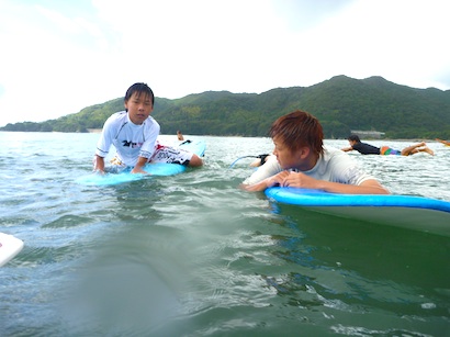 大阪のYブラザーズ。 さすが中高生。1本目から簡単に波に乗っていました。 後半には自力でのテイクオフも少しできるようになりましたね。 バランス感覚がすばらしくロングライド連発していました。 2人ともかっこよ