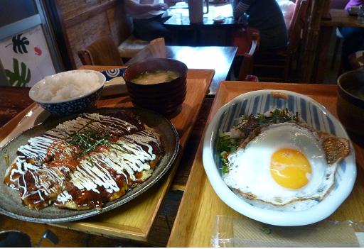 「おまたせしました~♪」 もっちーず 定食 & 豚の角煮丼 味噌汁セット 満腹コースですね 大雨の中 来ていただいてありがとうございました。