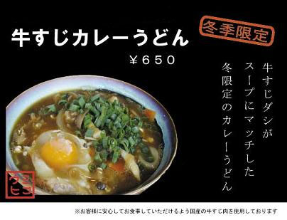 今年もこの季節になりました! 冬季限定 “牛すじ” カレーうどん ごはんセット も 好評です。 ご飯セット ¥750 寒~い海上がり たまりません。 温泉卵をつぶして 「はい!いただきま~す♪」 ※お昼時は少々お時間頂く事がございます。