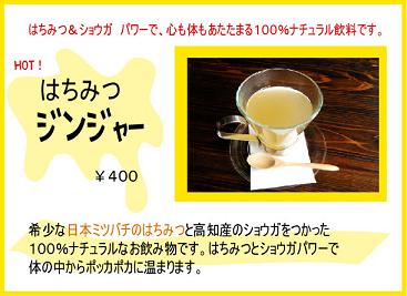 寒くなりましたねぇ~ 「はちみつジンジャー」 海上がりにうれしい、あたたまるお飲み物です。 本日より始まりました! -